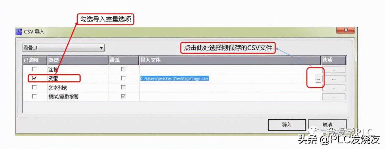 (4)打开触摸屏软件中“项目"选项里面的“导入/导出”选项,选择里面的“CSV导入”选项,把建立好的CSV文件的内容导入进去。
