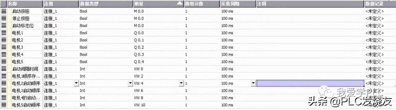 完成这些步骤后,就可以看到以及把200PLC中符号表里面建立的变量导入到了触摸屏软件的变量表中。