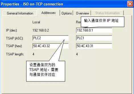 然后,进入“Addresses”配置通信双方的IP地址及TSAP地址,如图9所示。