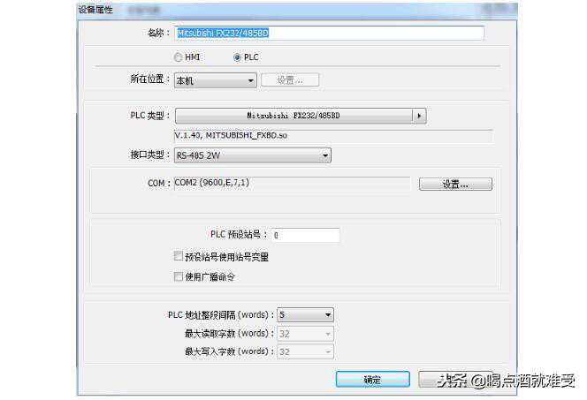 2、PLC设置: