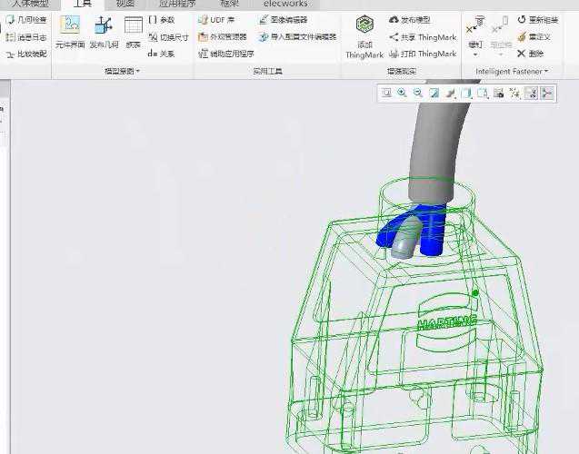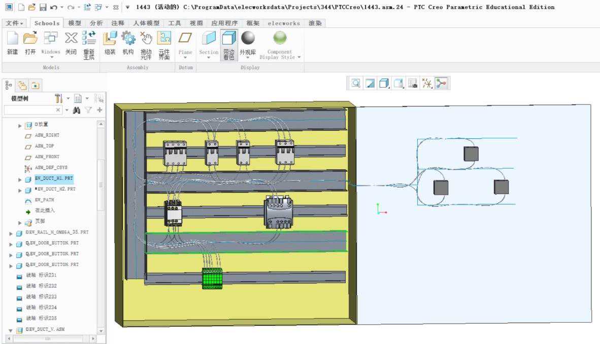 前面提到elecworks基于数据库的设计方式,可通过Creo插件直接读取到电气项目数据,并且可以在Creo环境下直接预览电气图纸。打开工程浏览器中的Creo格式文件,通过此方式进入,其实已经建立了电气数据与Creo装配体的关联。
