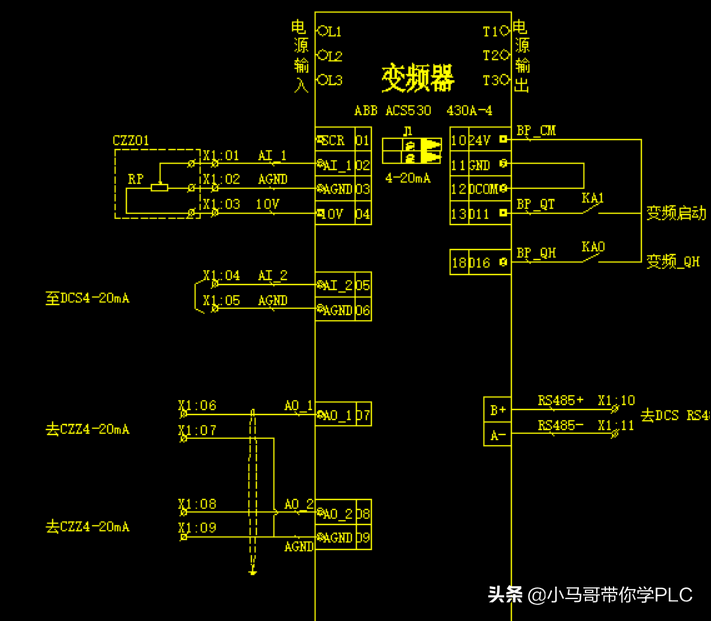 DCS柜(K-PAT01-D+/D-)与变频器连接(B+/A-)