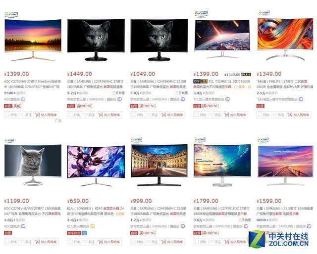 京东热销曲面显示器TOP10(图片截取自京东)