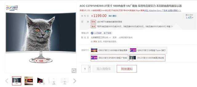 划重点:对于喜欢这个系列的小伙伴来说,这款27英寸的大屏幕应该是不错的选择,缺点是如果用来打游戏的话没有144hz有些遗憾,但整体来看依然是早期的一款较为不错的曲面显示器了。