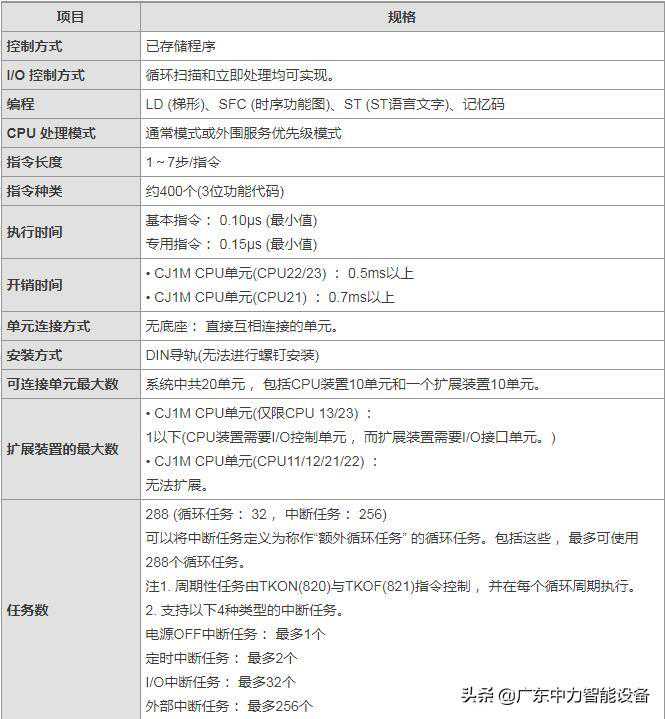 欧姆龙控制器SYSMACCJ系列CJ1MCPU单元(带内置I/O)公用规格