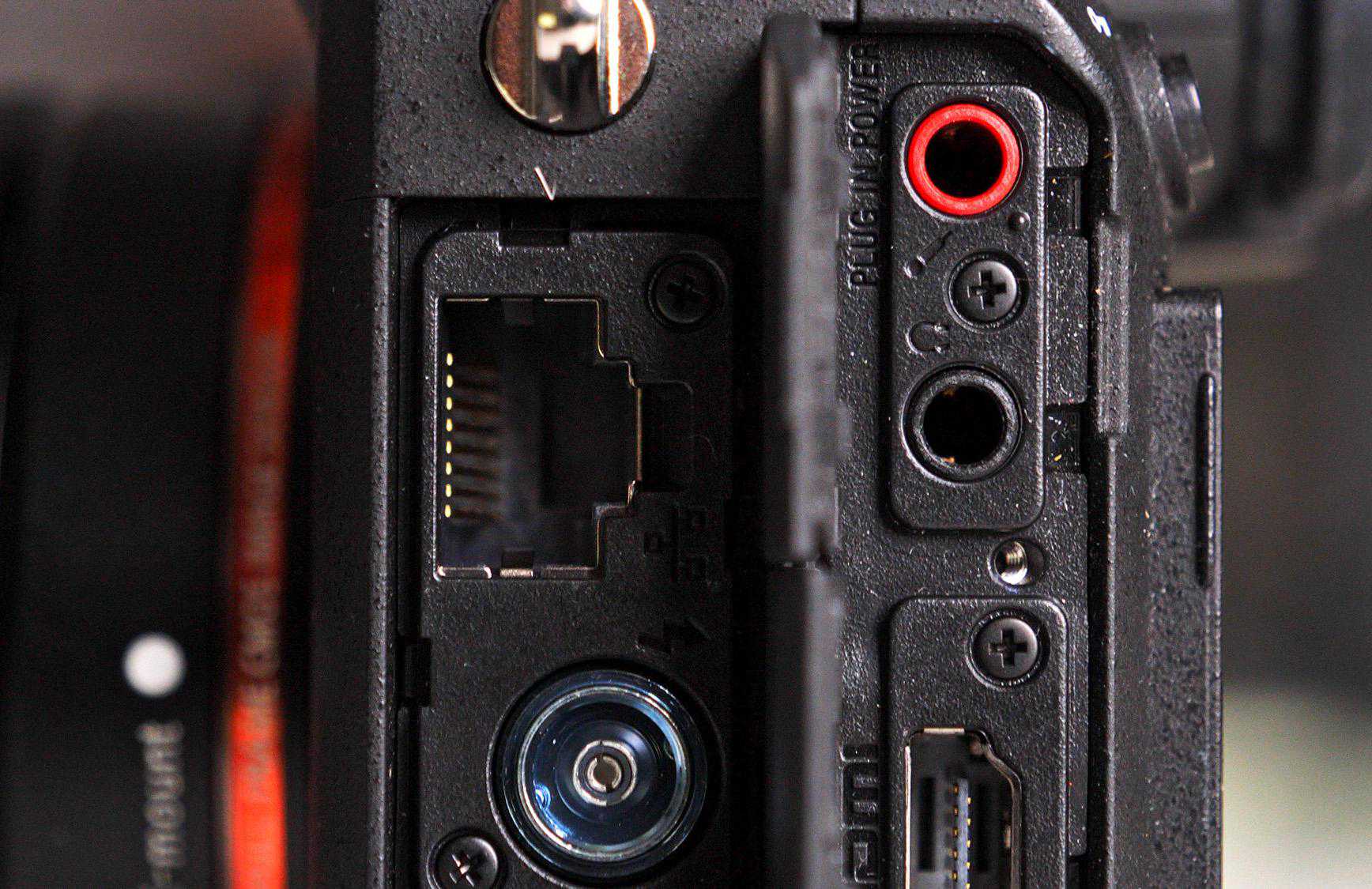 强大的相机当然少不了丰富的接口。索尼A1机身上集成有3.5毫米的麦克风和耳机插孔、可以供电的接口、千兆以太网口以及一个全尺寸的HDMI端口,特别要说明的是全尺寸HDMI要比佳能EOSR5上的迷你HDMI好用得多。