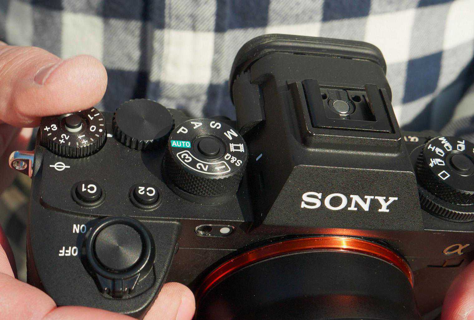 A1微单相机的机身控件包括快门、光圈拨盘、控制杆、控制轮、模式拨盘、曝光补偿拨盘和三个可编程按钮。索尼对这些拨盘和按钮做了小细节的改进,现在已经有了近乎完美的手感。