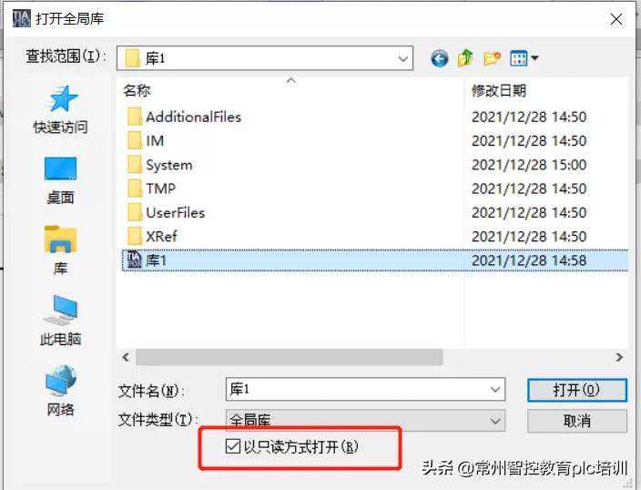在打开库文件前,还可以选择全局库文件的查看方式是只读还是可修改。(图1-10红框标记处)