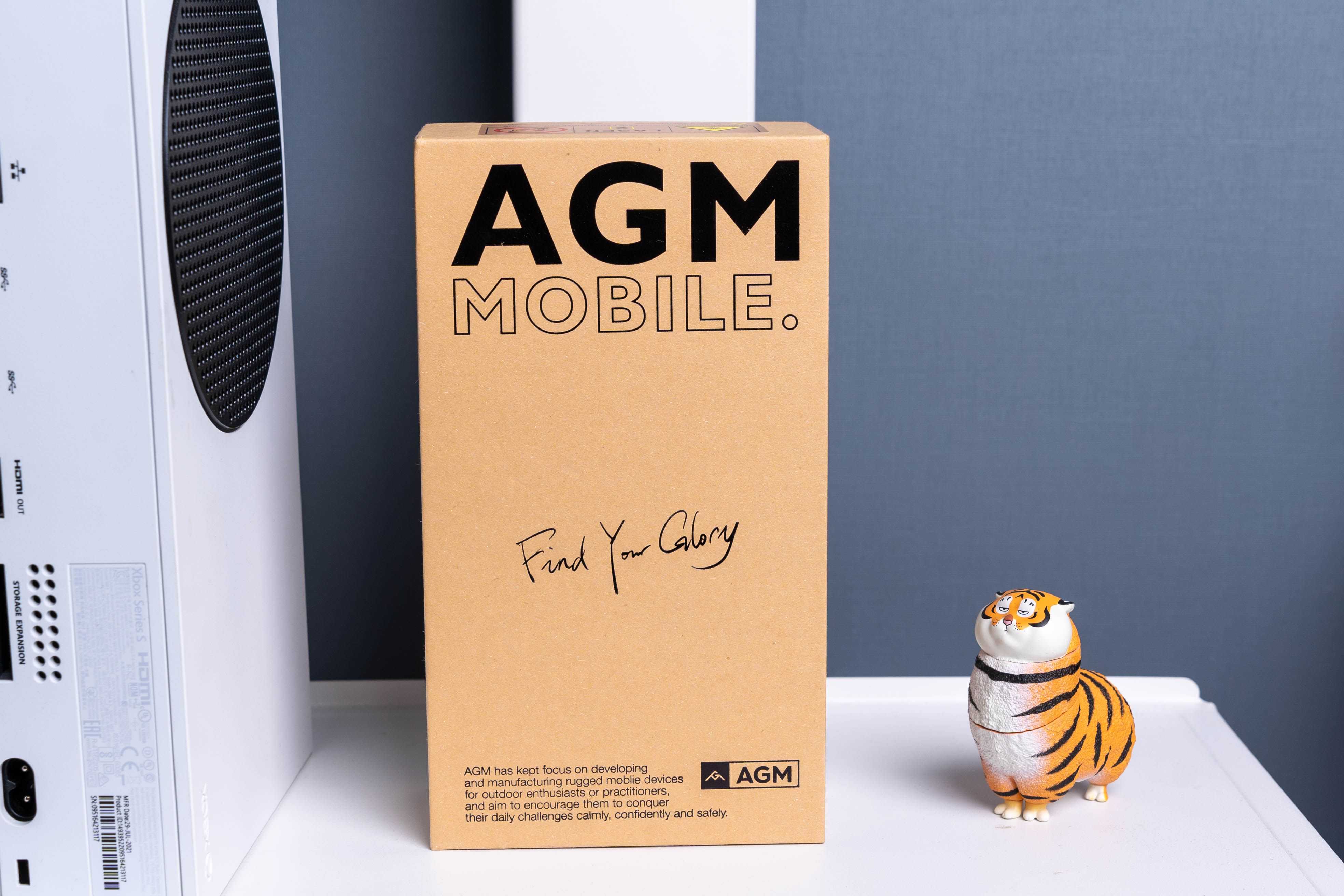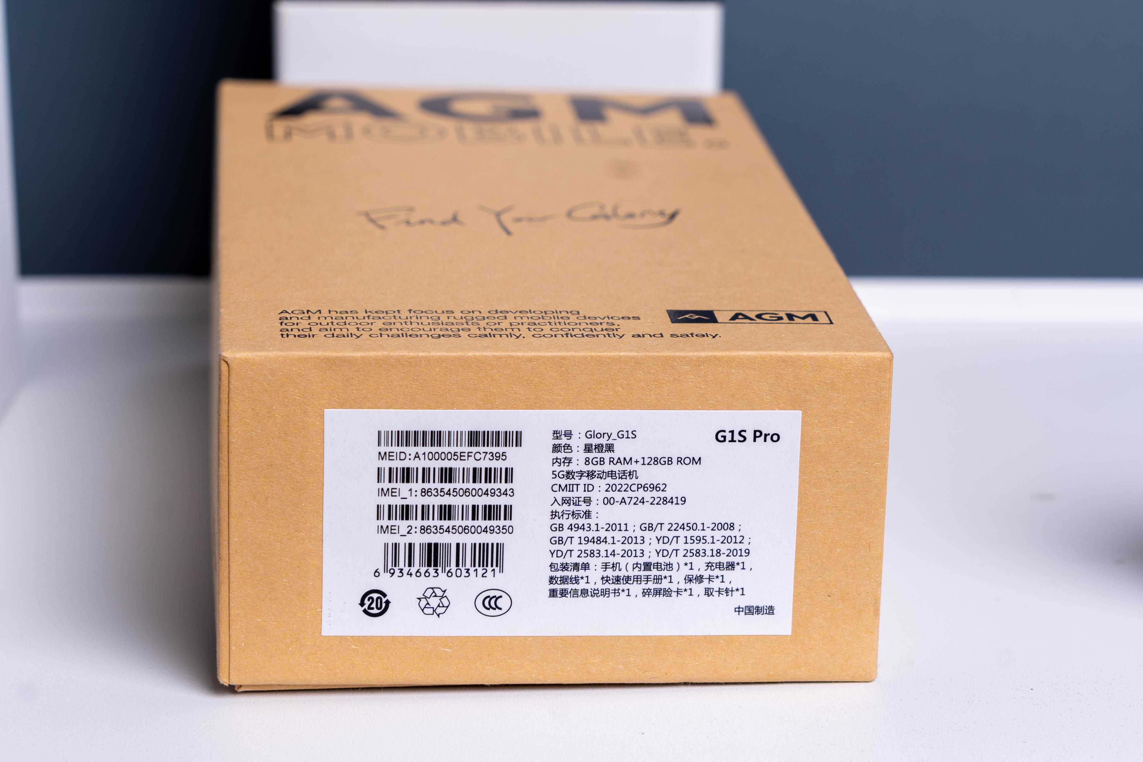开箱G1SPro的外包装盒与G1Pro有些区别,G1SPro换成了类似于牛皮纸的包装,包装盒正面有AGMlogo,下方是AGM公司的一些介绍。