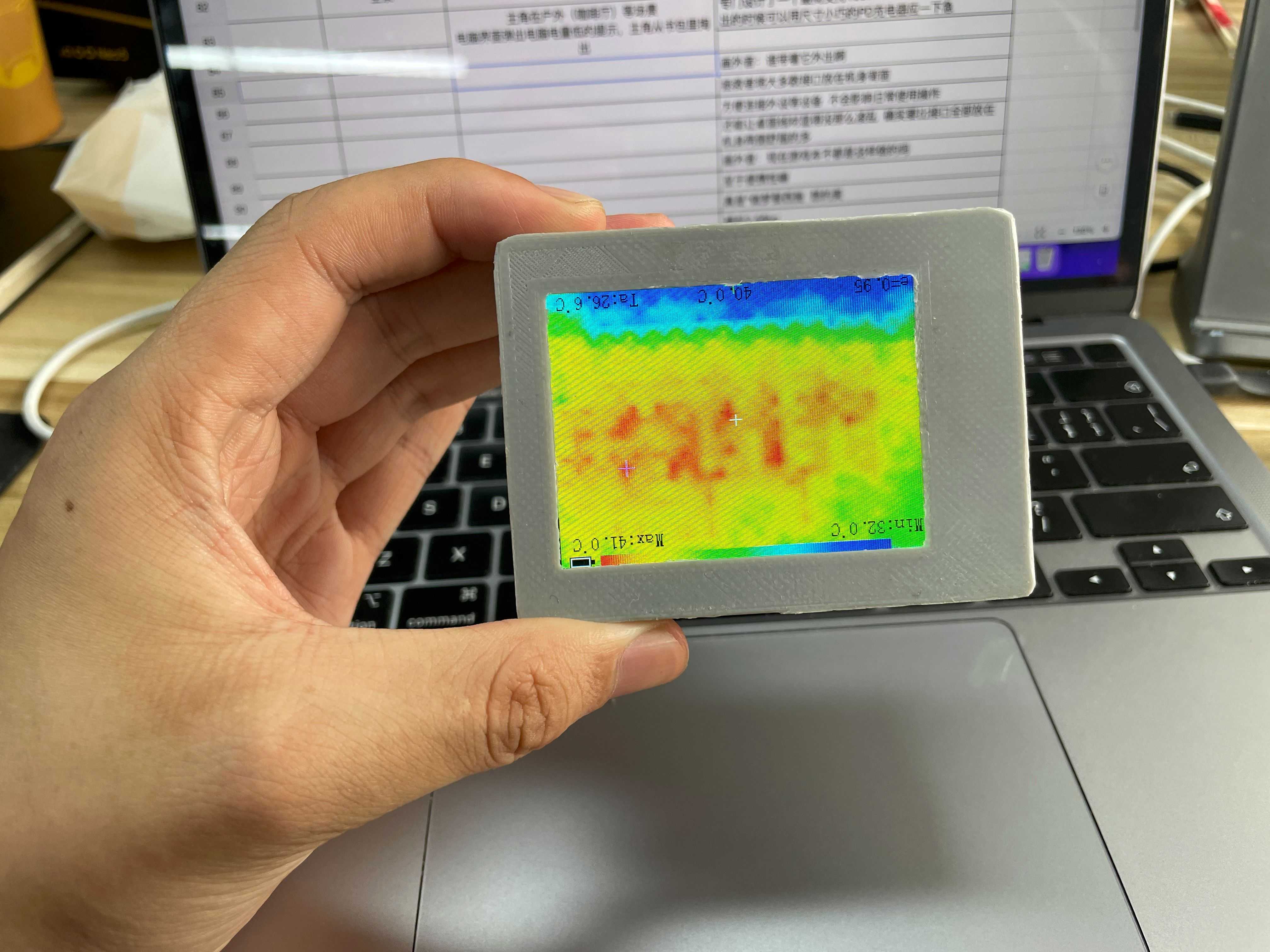 从点到面,看似提升很大,实际上500块钱的热成像根本没法用。做工先不说,2.8寸小屏幕,热成像分辨率只有32x24,拉胯的一批。拍个手机发热,连手机的轮廓都认不出来。