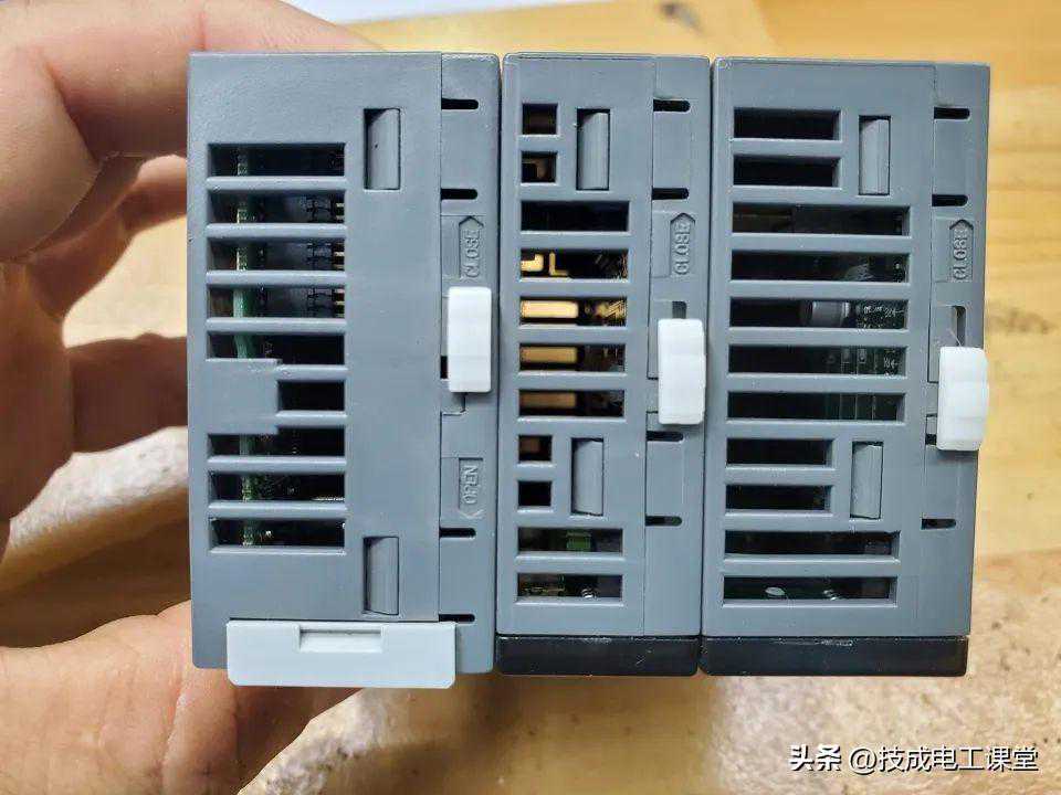 三组模块儿依次排开,都使用同一种接口。上下底部可以看到锁扣的位置。