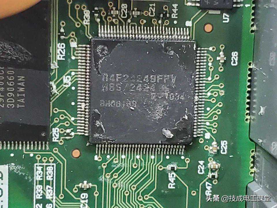 左边那个马来西亚生产的瑞萨D78F05358位单片微控制器。