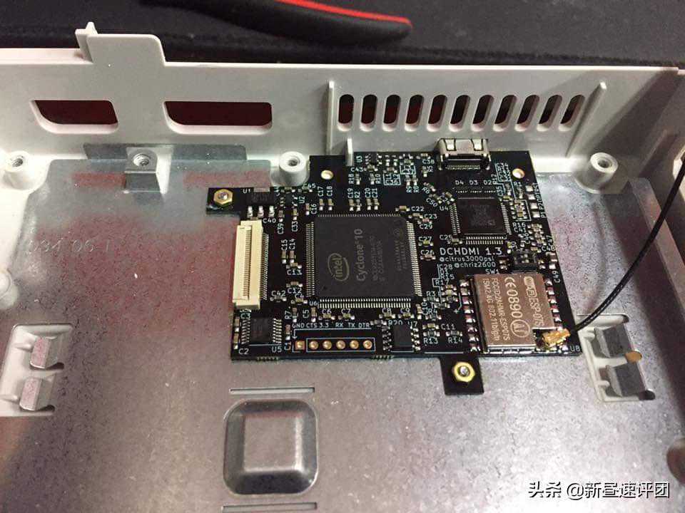 俯视角可以看到更多资讯,上部左侧是主板的一部分,开发机的内部12V供电采用的是PC上常用的大4Pin,主板则是标准20Pin,这些标准至今还在使用