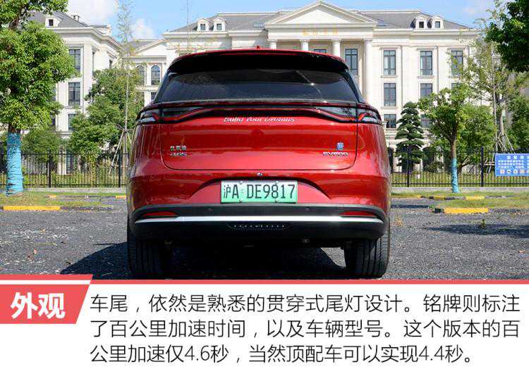 目前唐EV600有5款纯电车型在售,其中两驱版命名为唐EV600,四驱版名为唐EV600D,而我们拿到的这台车,也是五款车型中唯一官方0-100km/h加速达到4.6s的次顶配车型——四驱智联创领版(5座),补贴后售价为30.99万元。