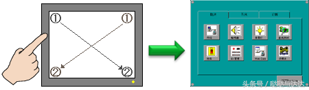 ——根据程序设置,按下触摸屏至少一个角,